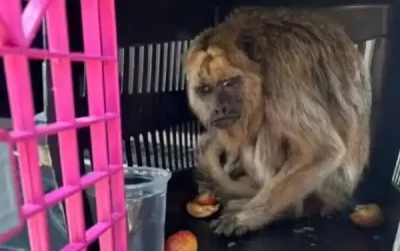 Um macaco bugio foi resgatado por policiais militares em um cativeiro ilegal no assentamento Nice, na zona rural de Muquém ...