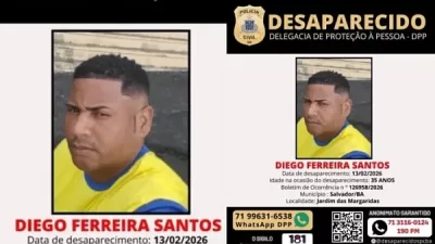 A Delegacia de Proteção à Pessoa (DPP) investiga o desaparecimento de Diego Ferreira Santos, de 35 anos, visto pela última ...Fundação Hospitalar oferece mutirão de pediatria com 300 vagas para crianças em Feira de Santana; ...