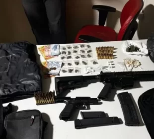 Uma operação conjunta entre forças estaduais e federais de segurança resultou na apreensão de um fuzil, pistola, munições e entorpecentes no bairro ...