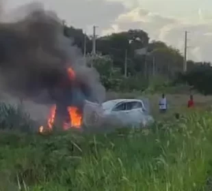 CARRO PEGOU FOGO: Jogador baiano do ABC se envolve em acidente na BR-101