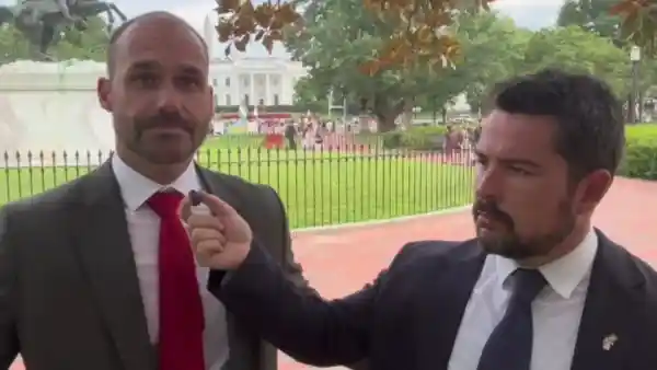 “Eu não falo em nome de nenhuma autoridade, mas, desse jeito, muito provavelmente o Trump também vai utilizar… Vai apertar outras alavancas para responder ao Brasil. Você tem Lei Magnitsky, você tem IEPA, você tem aí congelamento de bens, você tem cancelamento de vistos. Se você olhar, por exemplo, o que os Estados Unidos acabaram fazendo com relação à Rússia… São várias outras medidas, mas sempre no sentido de restringir o acesso ao mercado bancário, ao mercado consumidor norte-americano, ao sistema financeiro global. Enfim, o que vai ser, ninguém sabe. Porque agora está tudo dependendo, tudo está na mão do Trump, né? Ele puxou para si esse problema”, disse Eduardo Bolsonaro, na porta da Casa Branca, à repórter Raquel Krähenbühl, da Globo.