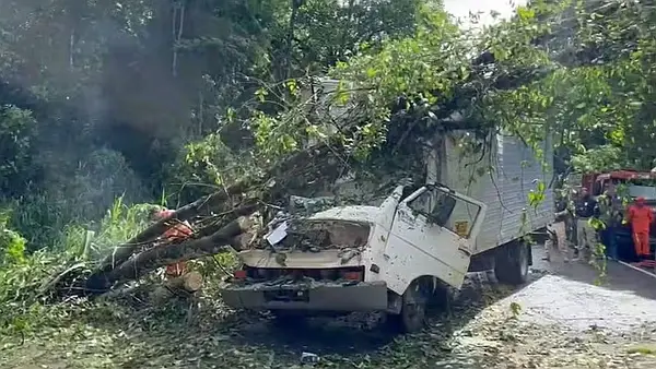 FATALIDADE: árvore cai e atinge caminhão-baú e mata duas pessoas na BR-415 em Itabuna