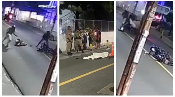 A câmera de segurança de um condomínio registrou toda a ação. Nas imagens, é possível ver que a vítima estava de moto e saía de uma padaria. O norte-americano foi abordado por dois suspeitos que estavam em outra moto e entrou em luta corporal com eles.