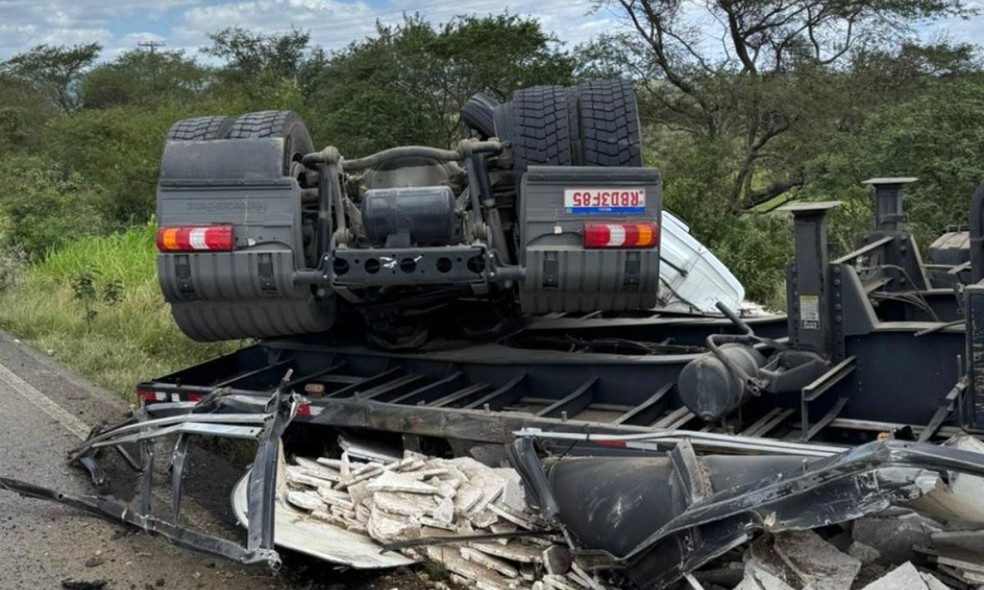 O caminhão ficou destruído após tombar na lateral da rodovia. Conforme a TV Bahia, equipes especializadas do Corpo de Bombeiros e da PRE precisaram realizar a remoção do mármore que caiu do veículo.