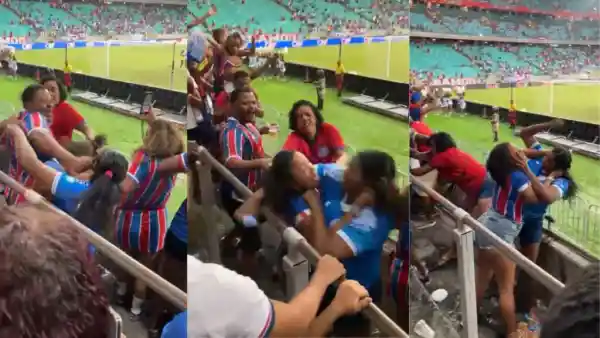 Após o triunfo do Bahia contra o Náutico, no sábado (7), torcedores foram flagrados trocando socos, empurrões e puxões de cabelo. A briga começou após uma mulher puxar o cabelo da outra. O companheiro dela estava ao lado e também deu socos em outra mulher.