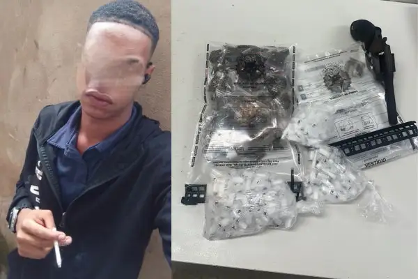 Com ele, os militares apreenderam um revólver calibre 38, 250 pinos de cocaína, 78 papelotes de maconha e 13 frascos e papelotes com crack. Todo matéria foi encaminhado para o Departamento de Homicídios e Proteção à Pessoa (DHPP), onde a ocorrência foi registrada.