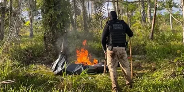 Ação ocorreu neste domingo (2), em Nilo Peçanha. Agentes desarticularam acampamento usado por criminosos envolvidos em assassinatos e tráfico de drogas na região.