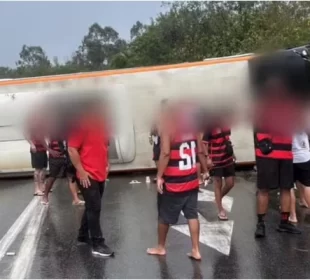 Um ônibus que transportava integrantes das torcidas organizadas do Flamengo para a Argentina sofreu um acidente na Via Dutra, na altura de ...