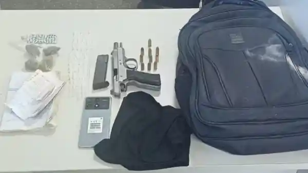 Durante a ação, os policiais apreenderam uma pistola Tanfoglio calibre 9 mm, um carregador, munições, pedras de crack, porções de maconha e cocaína, além de um celular, uma balaclava, cadernos de anotações relacionados ao tráfico e uma mochila preta.