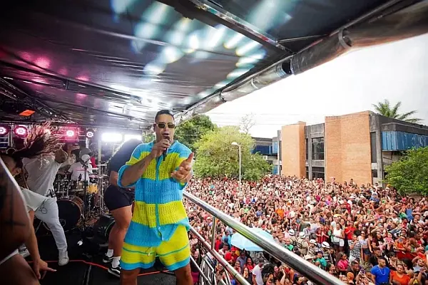 Do alto do trio elétrico, o cantor embalou o público e retribuiu o carinho da plateia.